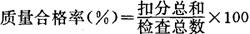 对调绘成果用扣分标准衡量后,得出扣分总和与检查总数的比值。计算公式为: