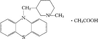 | 释义 | 醋酸哌卡嗪 C12H22N2S·C2H4O2=370.51 CAS-24360-97-2 CAS-60-89-9(mepazine) 10-[(1-甲基-3-哌啶基)甲基]吩噻嗪醋酸盐。 10-[(1-Methyl-3-piperidyl)methyl]phenothiazine acetate. 抗精神病药,安定药。 Mepazine Acetate. INN & BAN(Pecazine),USAN.