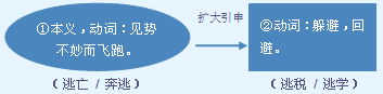 释义 | ![]() 躲开;溜走: 向外~去|他过去老~课|不小心让犯人~走了。 遁 dùn ★ “逃”适用范围较广,可用于口语和书面语。“遁”属于书面语,如说“遁走、远遁、逃遁”。 逃跑,为躲避对自己不利的事或环境而迅速离开: 望风而~|~之夭夭|我没管住,他又~了。 追 zhuī ~赶|穷~猛打|奋起直~|紧~不放|那人还没跑远,快~上去。 ❶逃跑,逃走。 a.常作带宾、带补谓语。 这家伙~过三次了|罪犯已~往国外|从这座监狱里~出三个犯人|兔子见着狗就~了。 b.作“想”“打算”等动词的宾语。 你想~,妄想!|他们正打算~,公安人员赶到了,一个也没有逃掉。 c.作定语,要带“的”。 他们已约好了~的时间、~的路线。 ❷逃避。 a.作带宾、带补谓语。 天网恢恢,难~法网|考试这一关,无论如何你也~不过去|你怎么也~不了体格检查这一关|~了今天~不了明天|不按自然规律办事,最终~不掉自然规律的惩罚。 b.作定语,要带“的”。 在困难面前我没有~的打算。 【辨】 逃和逃跑:都是动词,都有为躲避不利于自己的环境或事件而离开的意思。主要区别是词义范围不完全相同:“逃”还有逃避的意思,如“难逃法网”;“逃跑”没有这层意思。 【词语】 逃奔 逃兵 逃遁 逃犯 逃荒 逃难 逃匿 逃跑 逃散 逃生 逃脱 逃亡 逃席 逃学 逃之夭夭 逃走 字源解说 兆,既是声旁也是形旁,表示预见、预示。逃,篆文 ![]() ![]() ![]() ![]() ![]() ![]() 附 文言版《説文解字》:逃,亾也。从辵,兆聲。 附 白话版《说文解字》:逃,亡命,为躲避追杀而狂奔。字形采用“辵”作边旁,“兆”作声旁。 引申线索 ![]() 【字族索引】 兆 【同音字】 táo |
