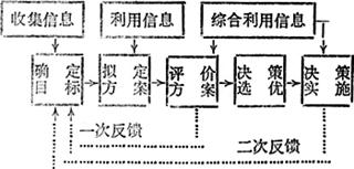 | 释义 | 银行科学决策过程 指根据有关信息制定并实施决策,实现其目标的过程。决策的全过程可分为三个阶段:(1)进行科学预测和确定决策目标阶段;(2)拟定各种可供选择的决策方案阶段;(3)在几个可供选择的方案中确定采用哪一个方案阶段,即要求对各种方案进行可行性的分析、比较。其决策过程图示如下: