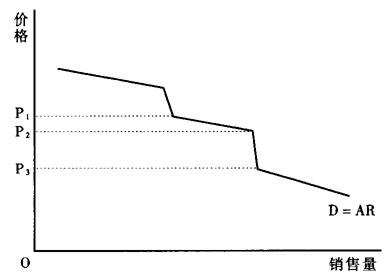 | 释义 | 阶梯式定价 价格定在对消费者有明显心理作用的临界点上,此时价格变动对销售量会产生很大的影响。如图所示,当需求曲线是一条各段斜率均为负的阶梯式折线时,把价格定在P2和P3之间,价格变动对需求没有多大影响;只有定在P1和P2之间,价格变动才会产生很大影响,因为后者的需求弹性大于前者的需求弹性。